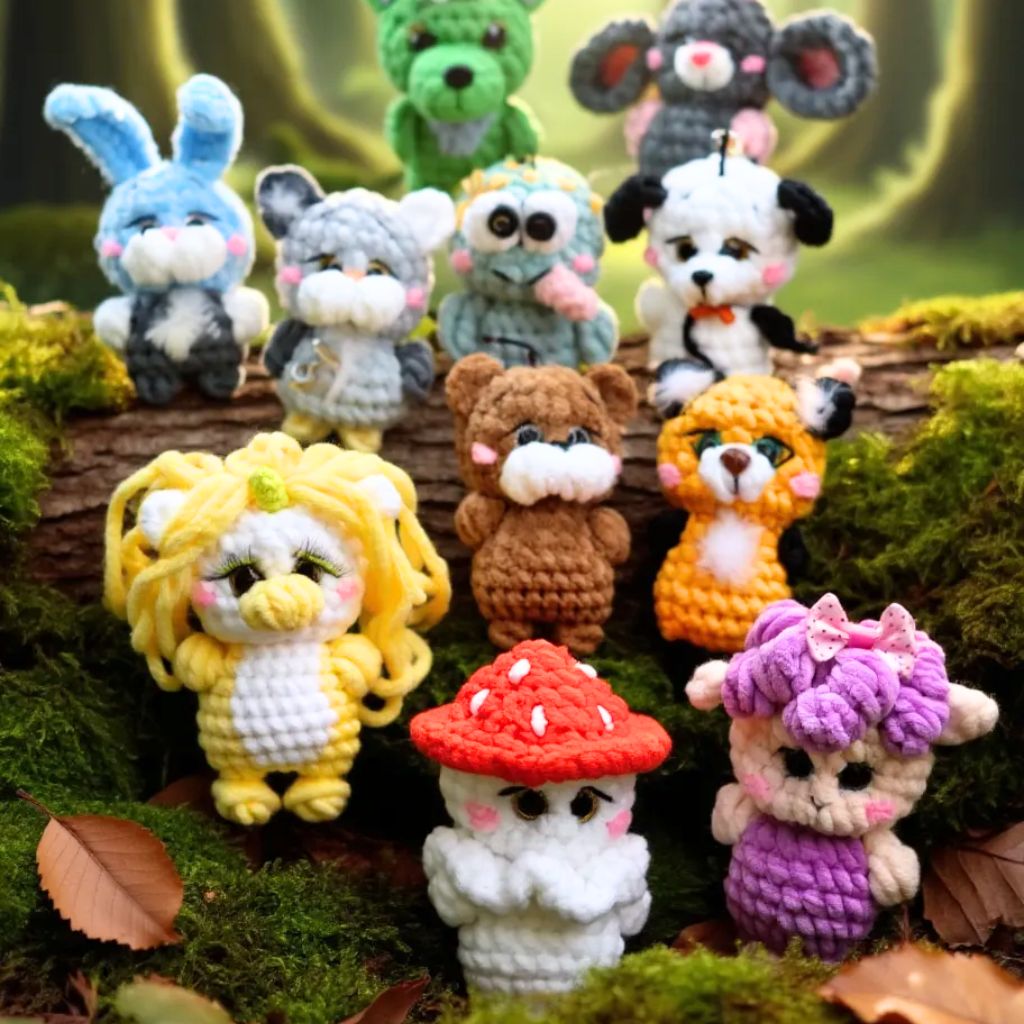 Every pattern is no sew, easy to follow, and perfect for creating small 8–10 cm plush keychains.