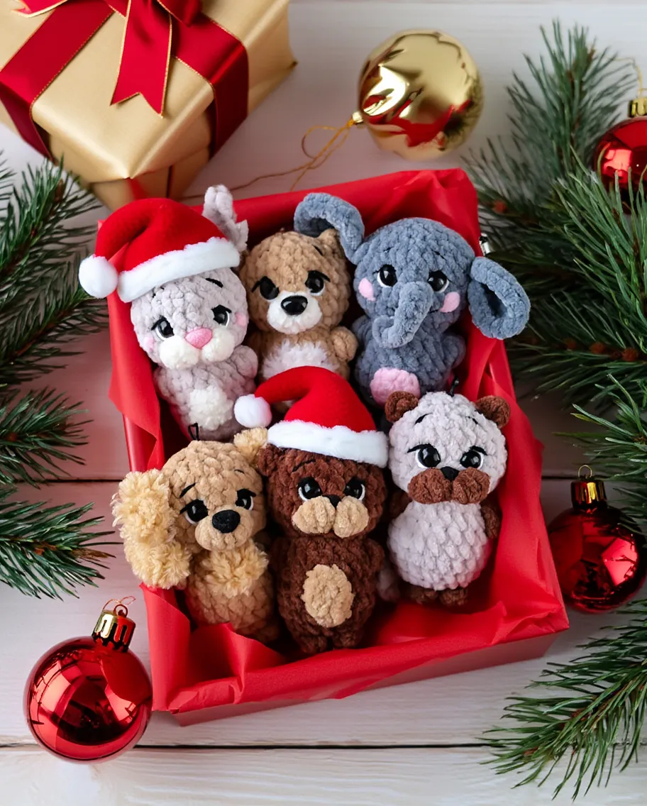 This eBook includes 50 amigurumi characters + Christmas accessories, such as a Santa hat, elf hat, tiny scarves, festive elements, and even a cute Grinch-inspired plush.
