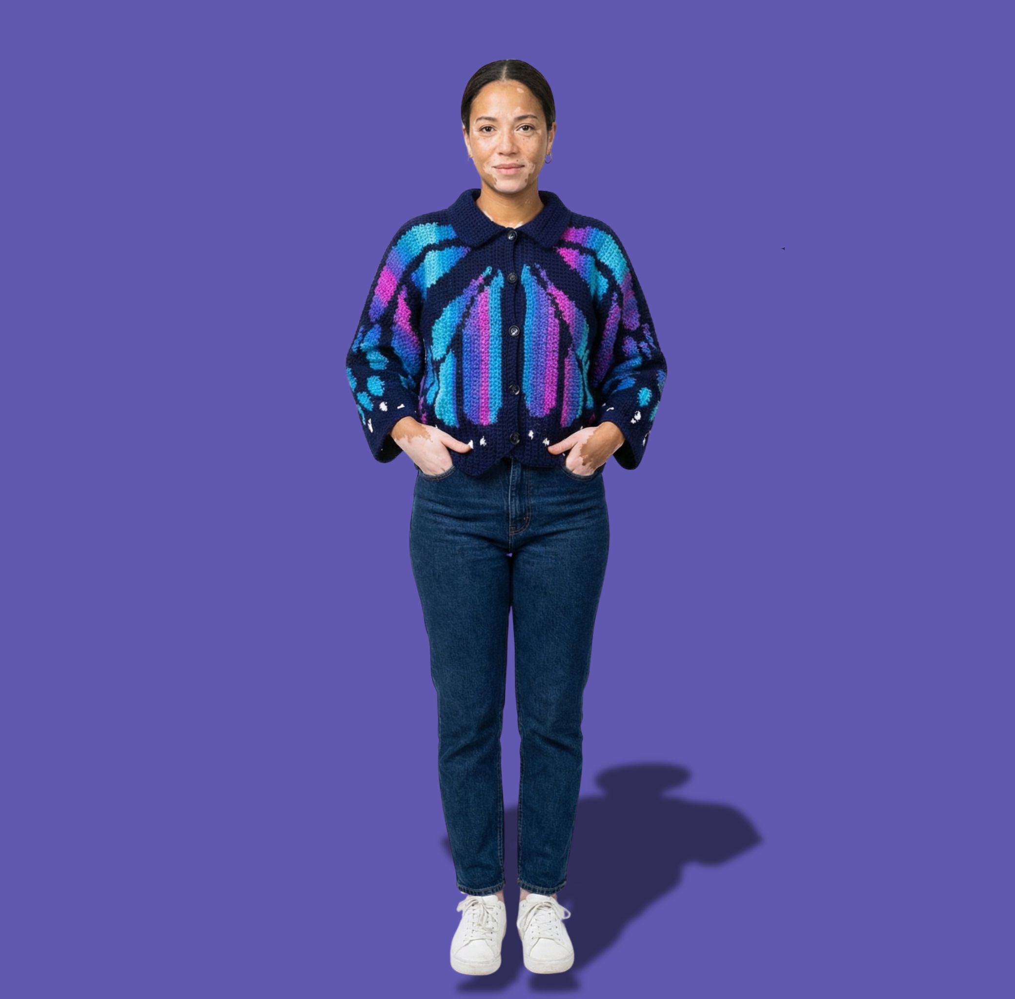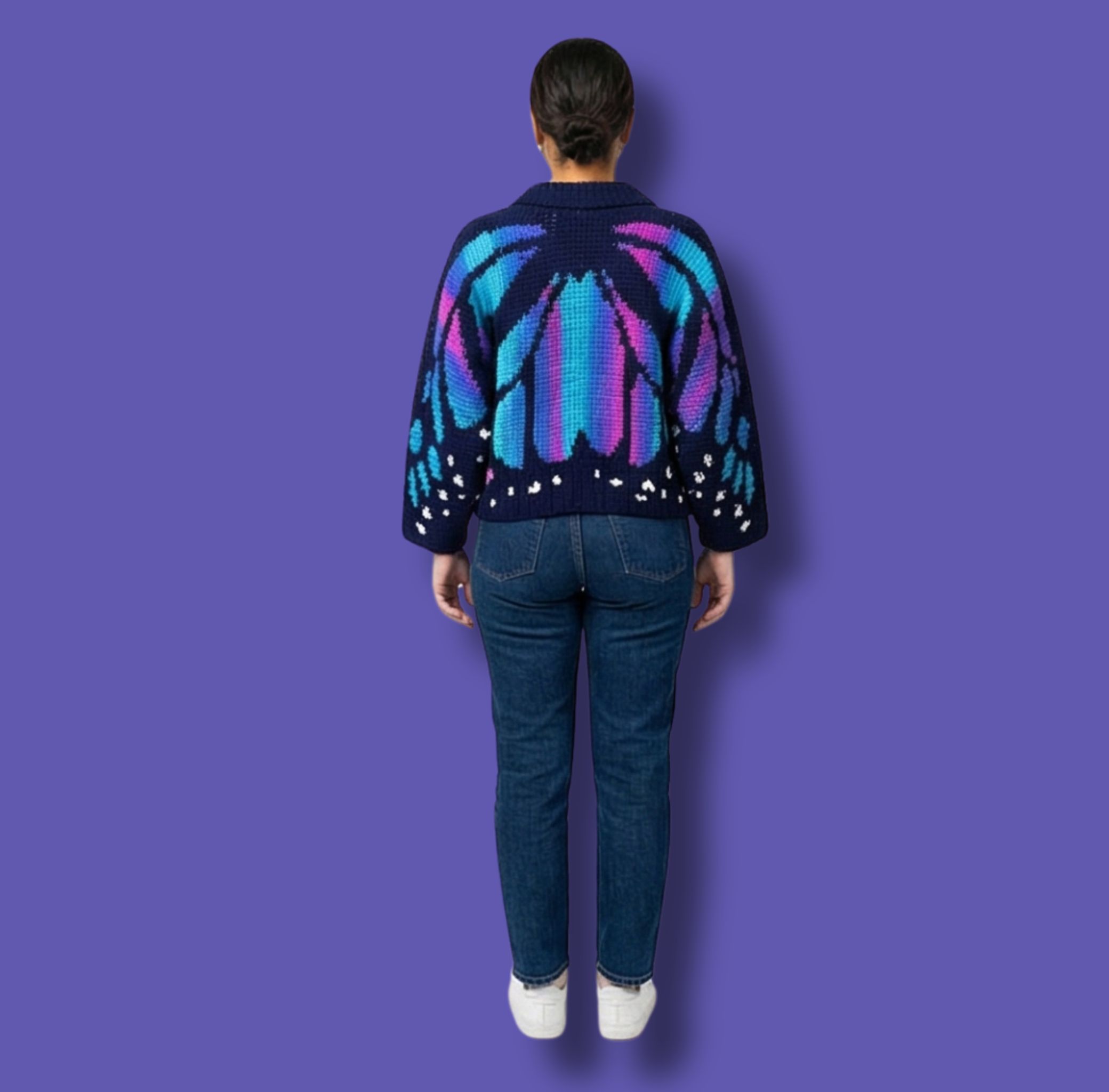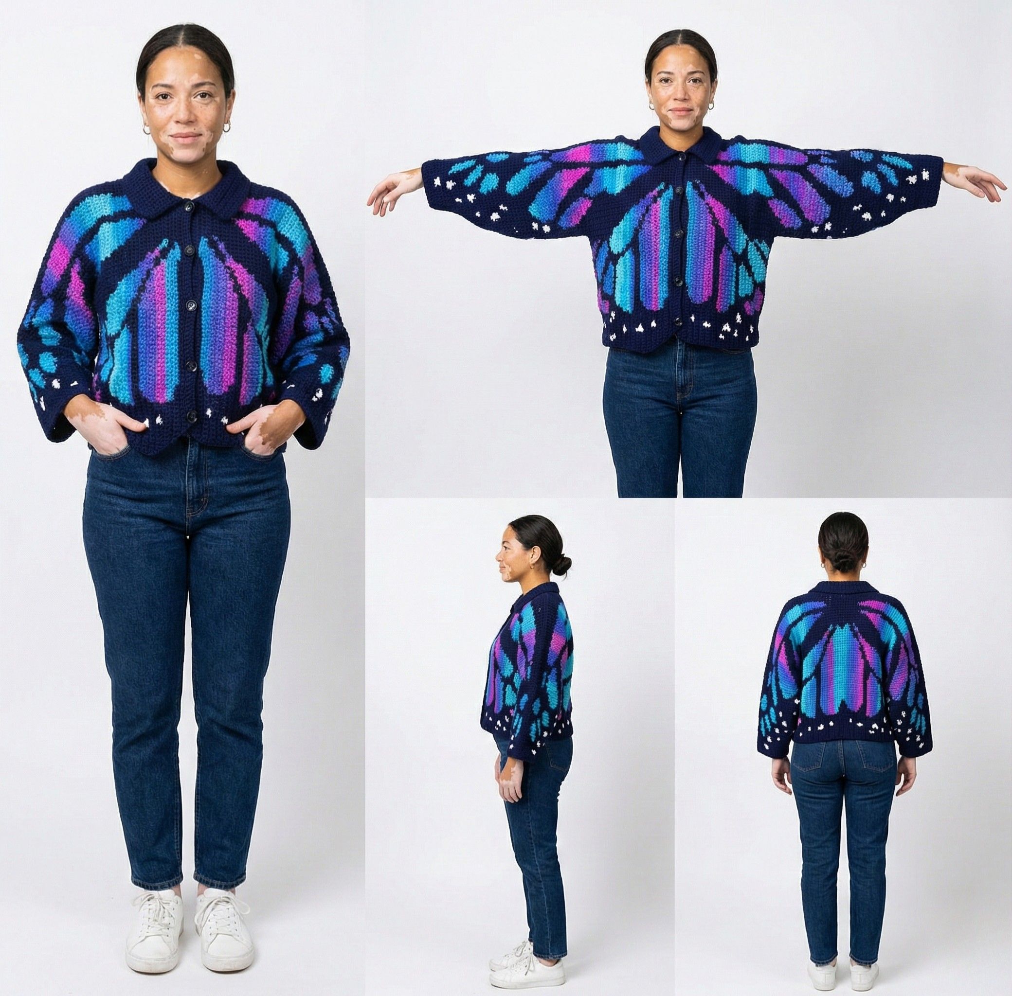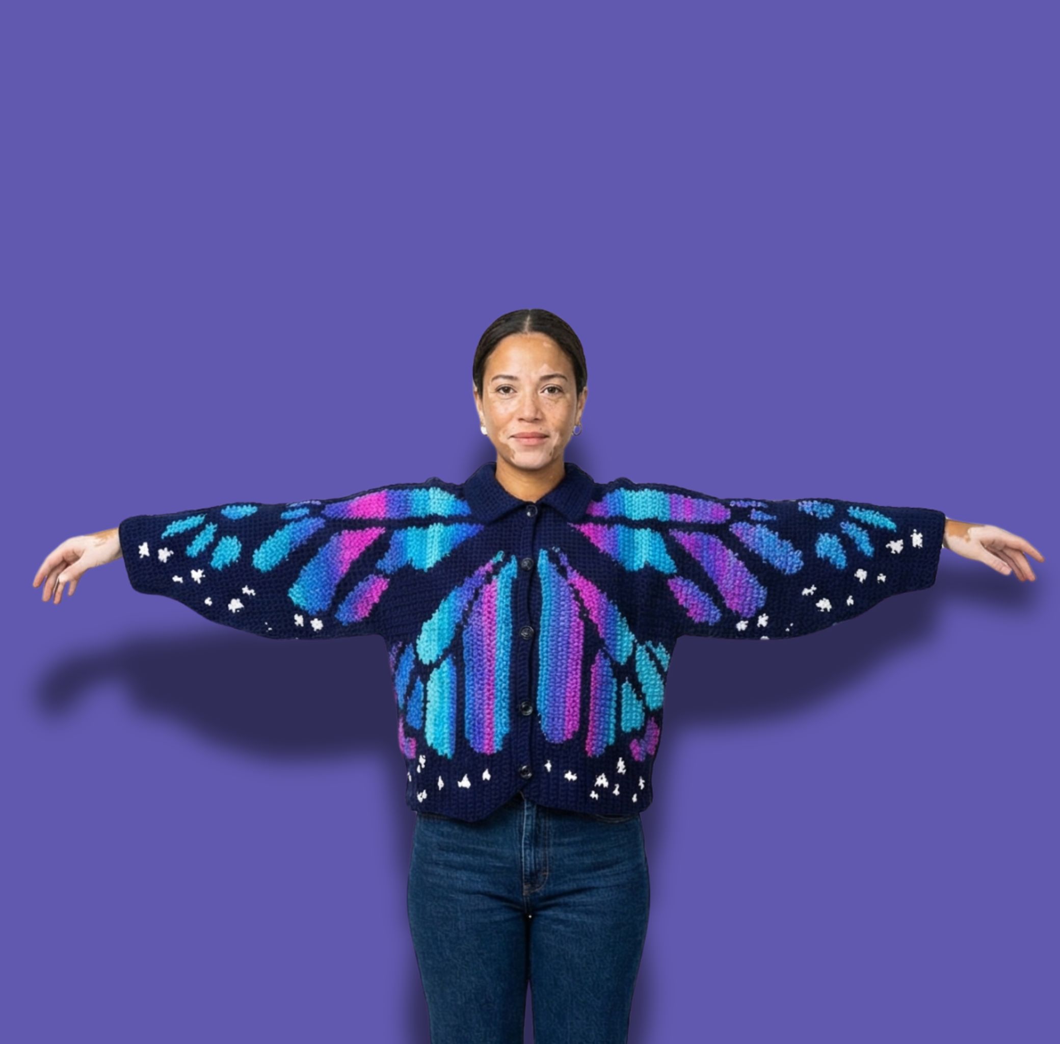 Create a bold, wearable statement with the Monarch Butterfly Cardigan & Sweater Crochet Pattern. This detailed PDF pattern guides you step by step through crocheting an oversized butterfly wing cardigan or sweater using tapestry crochet techniques and US crochet terms.