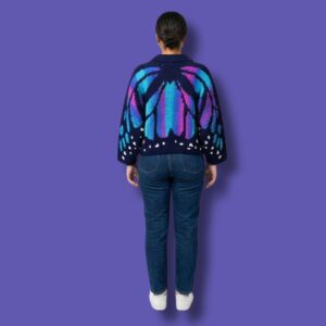 The pattern includes multiple sizes, clear colorwork charts, and in-depth explanations on how to read and crochet tapestry charts. You’ll crochet separate panels (front left, front right, and back) and assemble them into a dramatic, flowing garment inspired by the monarch butterfly. A video tutorial is included to support visual learners throughout the process.